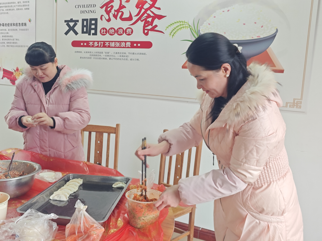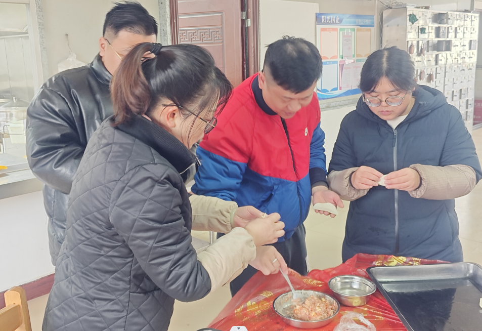 在公司職工食堂,正舉行著熱火朝天的包餃子比賽。大家相互協(xié)作,各顯身手。搟皮、填餡、封口,忙得不亦樂(lè)乎。包餃子的過(guò)程中,大家也拉家常、交心聲、談家風(fēng),互相送上真摯的問(wèn)候祝福。
